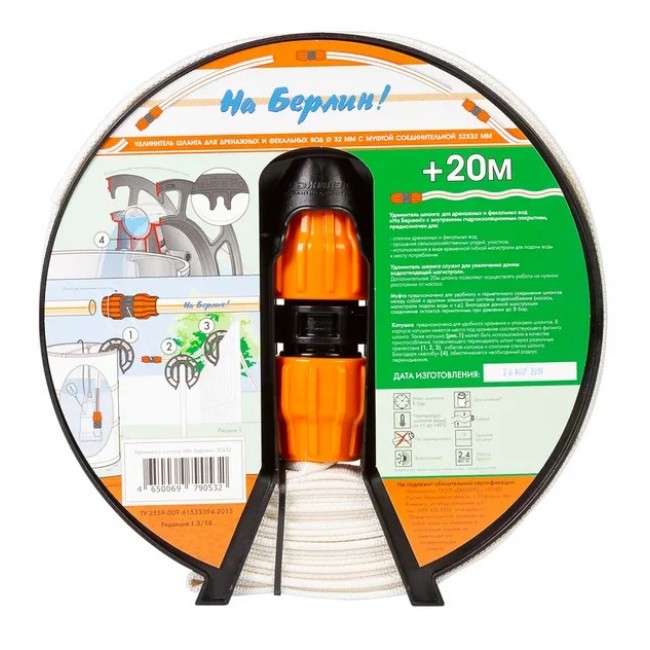 Удлинитель шланга служит для увеличения длины водоотводящей магистрали. Дополнительные 20 м шланга позволяют осуществлять работы на нужном расстоянии от насоса. Предназначен для отвода дренажных и фекальных вод, орошения сельскохозяйственных угодий и участков. Используются в виде временной гибкой магистрали для подачи (отвода) воды к месту потребления (сброса). Катушка, идущая в комплекте, обеспечивает удобное хранение шланга. Может быть использована в качестве приспособления, позволяющего перекидывать шланг через различные препятствия.