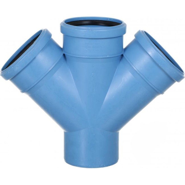 Крестовина одноплоскостная. Применяется для внутренней канализации, для зданий с повышенными требованиями к шумоизоляции