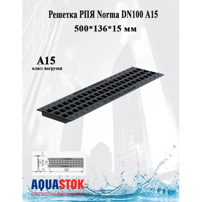 Решетка РПК Norma DN100 А 15 пластиковая (500*136*15)
