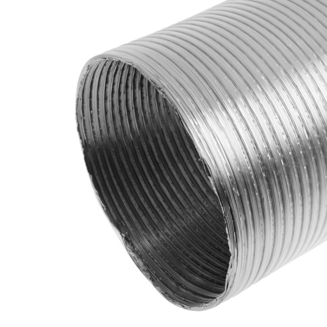 Гофрированный спирально-навивной воздуховод предназначен для прокладки вентиляционного канала с удобным формированием углов и поворотов. Для простого соединения вытяжки с вентиляционной шахтой с минимальным набором фасонных элементов. Тип соединения: тройной замок. Материал: алюминиевая фольга. Толщина: 70 мкм. Рабочая температура: -30 до +300 °С. Воздуховоды свободно растягиваются и сгибаются. Максимальная длина в растянутом виде: 3 м.