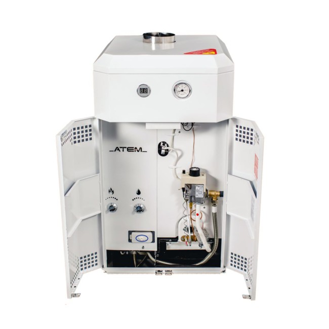 АТЕМ Житомир-10 КС-Г-15 СН - дымоходный газовый котел с независимым блоком газового водонагревателя! Котел и Колонка. Преимущества котла Житомир-10: В сравнении с обычным двухконтурным напольным котлом: Очень высокая производительность второго контура ГВС (10 л/мин). В сравнении с двухконтурным навесным котлом: Энергонезависимость (не требует подключения к электросети). Независимость блоков отопления и ГВС друг от друга (например летом работает только блок ГВС). Простота конструкции.