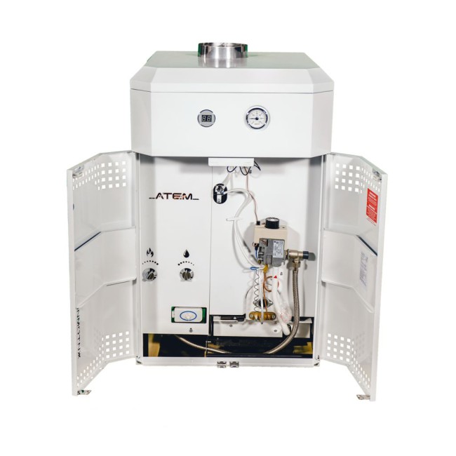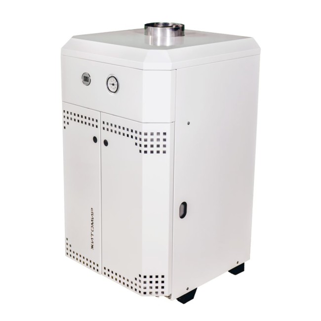 "Житомир-10" - это напольный дымоходный котел с независимым блоком газового водонагревателя. Отопит площадь до 220 кв. м.