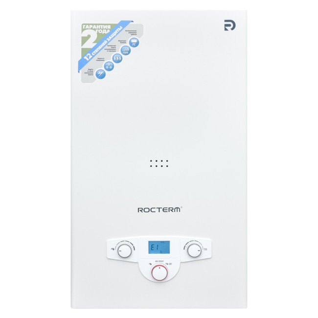 Газовый котел ROCTERM серии TD-B20 имеет закрытую камеру сгорания (турбированный) и битермический теплообменник. Компактность аппарата и простая панель управления обеспечивают эффективность и функциональность, дополненные современным дизайном и оригинальным стилем. Надежный, проверенный теплообменник, встроенная функция самодиагностики — обеспечивают высокие показатели комфорта и эффективности, так же, как и высокий уровень надежности и качества, которые всегда были присущи всей продукции, выпускаемой под торговой маркой ROCTERM. Котел оснащен четырьмя стандартными программами таймера. Особенности: Котел оснащен 12-ю функциями обеспечения безопасности и самодиагностики с выводом кода неисправностей на дисплей, что позволяет их легко выявлять и устранять. Панель управления оснащена кнопками и ручками регулировки, которые позволяют пользователю легкоуправлять котлом. Дисплей котла показывает состояние системы: на нём высвечивается значение температуры, работа основных агрегатов.