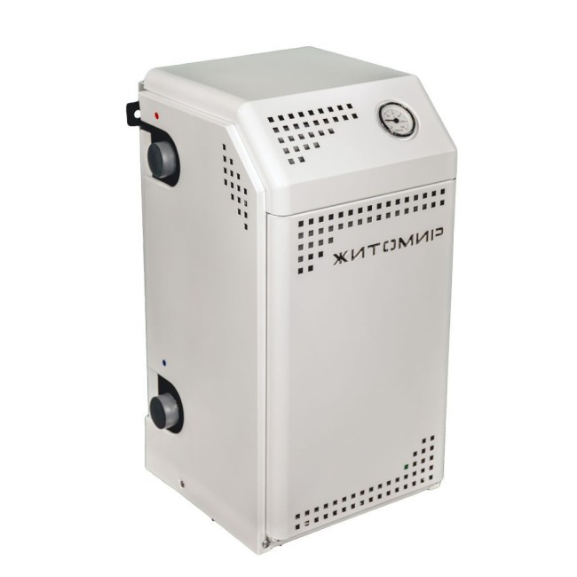 Житомир-М АОГВ-10 СН (АОГВ-10СН) - парапетный, одноконтурный отопительный газовый котел, отапливаемая площадь - 100 м2, мощность - 10 кВт, расход газа - 1,11 м3/час, автоматика "EUROSIT", размеры (ВхШхГ) - 740х385х360 мм.