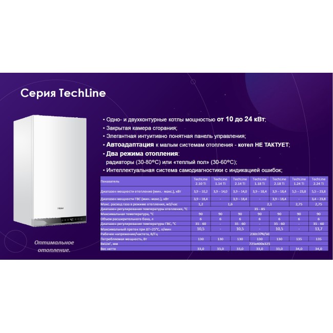 Котел газовый TechLine 2.24 Ti 24 кВт, 2-х конт, турбо, без трубы Haier