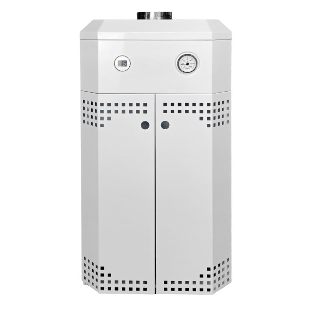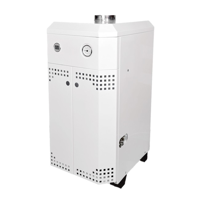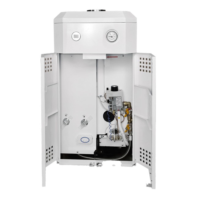 Двухконтурный газовый напольный дымоходный котел с независимыми блоками отопления и водоподогрева.