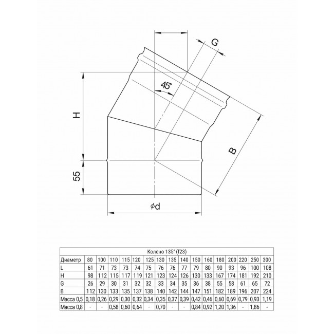 Колено угол 135° 430/0,5 мм Ø200 f2312 Ferrum
