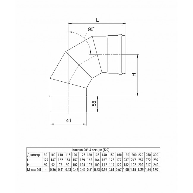 Колено угол 90° 430/0,5 мм Ø135 f2407 Ferrrum