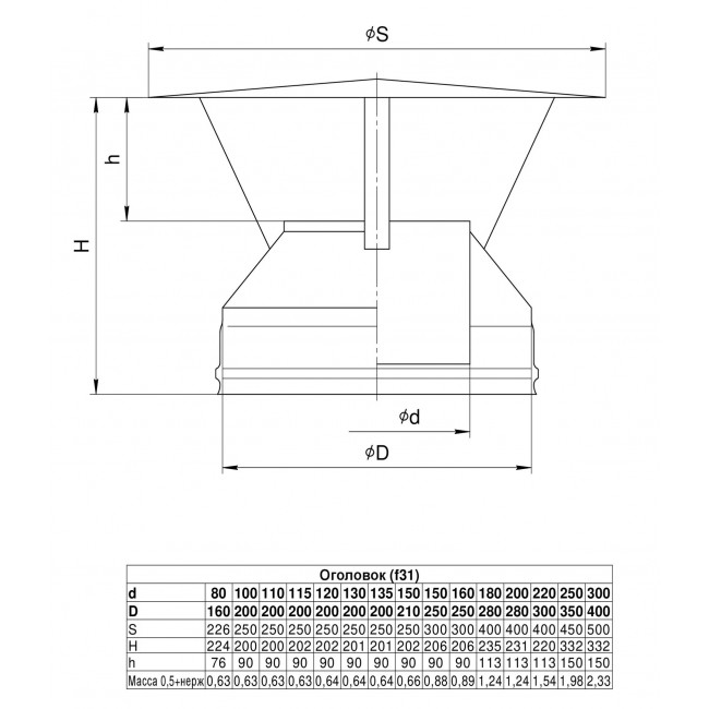 Оголовок является завершающим элементом дымового канала. Устанавливается на двухстенный дымоход и закрывает слой теплоизоляции, защищая ее от атмосферных осадков. Также предотвращает попадание атмосферных осадков в канал дымохода
