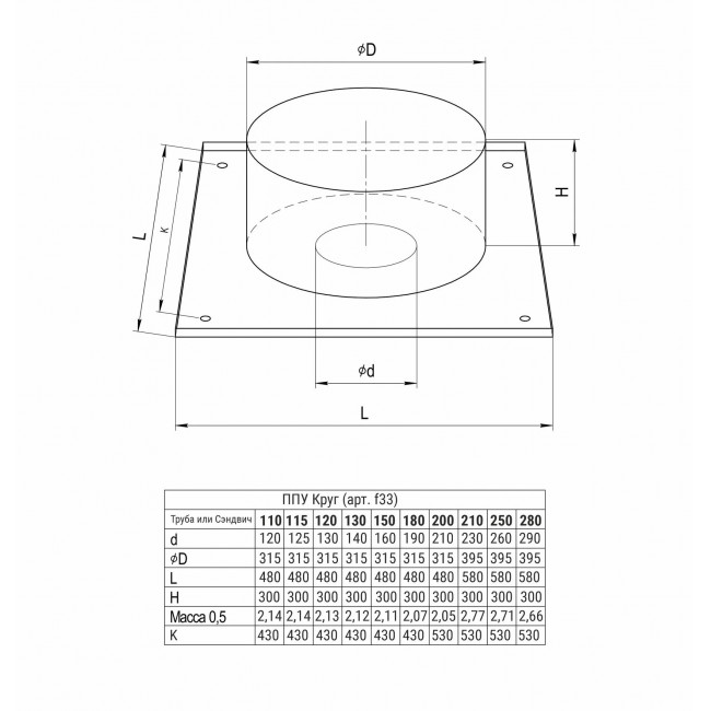 Потолочно проходной узел 430/0,5 мм Ø150 f3309 Ferrum