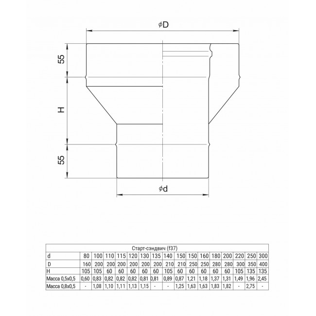 Старт-сэндвич предназначен для перехода с одностенных на двустенные системы дымоотведения.