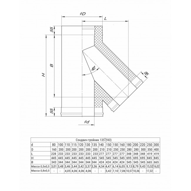 Сэндвич-тройник 135* 430/0,5 мм + нерж Ø 150*210 f4308 Ferrum