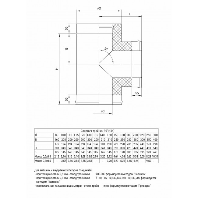 Сэндвич-тройник 90* 430/0,5 мм + нерж Ø 150*210 f4408 Ferrum