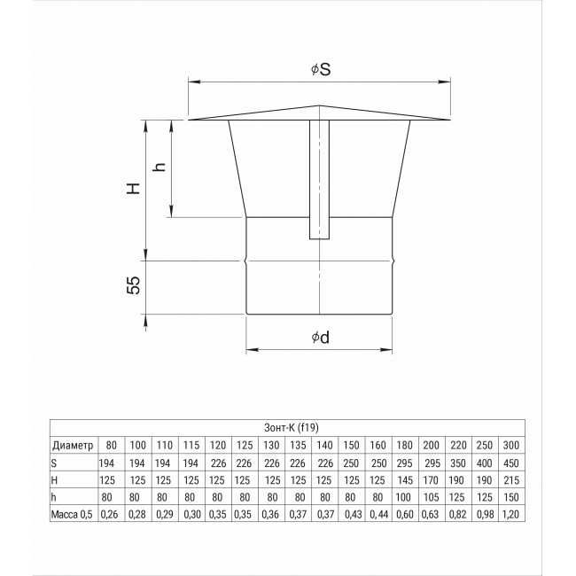 Используется для защиты одностенного дымоход от атмосферных осадков, является завершающим элементом системы дымоотведения. Элемент выполняется из стали толщиной 0,5 мм.