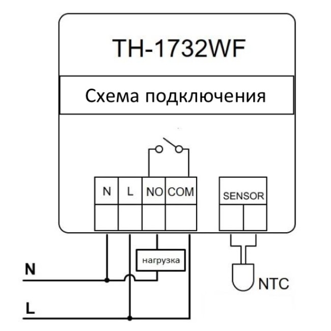 TH-1732WF является проводным программируемым комнатным терморегулятором, встраиваемым в подверточную коробку, с питанием от сети 220 вольт, с возможностью подключения выносного датчика температуры. Подходит для управления любыми нагревательными приборами, газовыми котлами, конвекторами, теплым полом и т.д.Терморегулятор подключается к интернету через Wi-Fi, сопрягается с телефоном или планшетом и в последствии управляется через приложение дистанционно из любой точки, где есть Интернет.