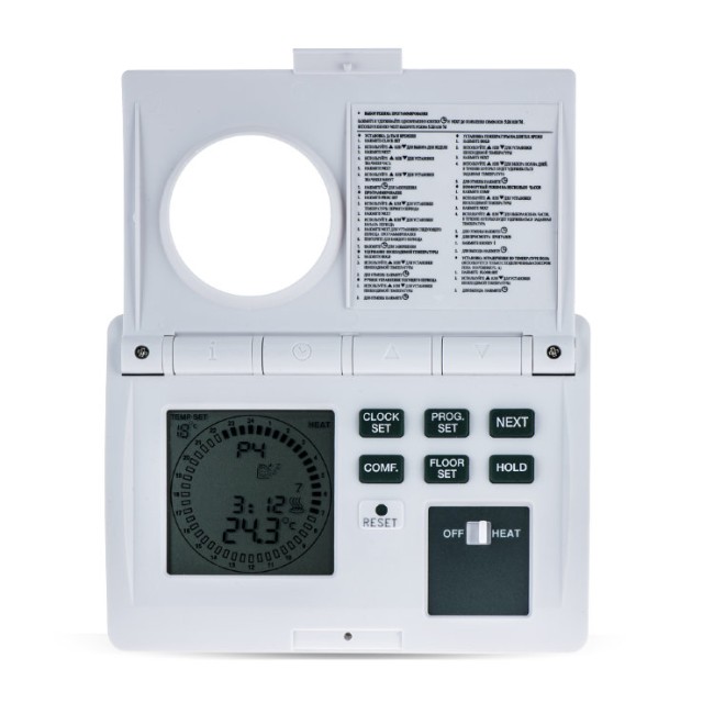 Универсальный программируемый терморегулятор для теплых полов и систем электрического отопления Frontier TH-0108FS со встроенным датчиком воздуха и выносным датчиком пола. Жидкокристаллический дисплей. Режимы работы: датчик воздуха /датчик воздуха + датчик пола. 2 режима программирования: на каждый день, на 5 рабочих дней + 2 суббота и воскресенье. Функция удержания температуры до 100 дней.