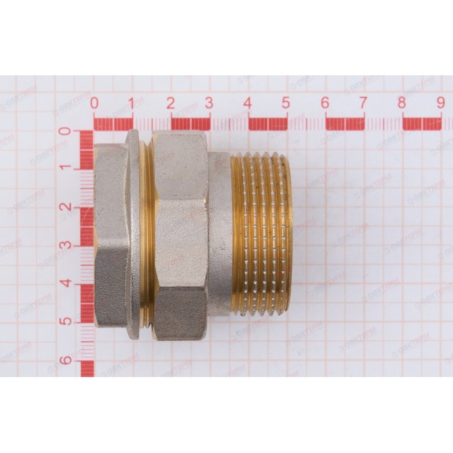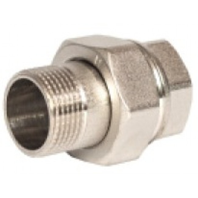 Количество в упаковке: 45шт. Прямой разъемный сгон, смонтированный из двух частей с помощью накидной гайки (соединение типа «американка»). Резьба – внутренняя/наружная, цилиндрическая трубная. Внутренняя резьба совместима также с наружной конической трубной резьбой. Детали выполнены из латуни, никелированы. Уплотнительное кольцо – из синтетического каучука EPDM. Гайку следует накручивать с приложением момента не более 30 Н*м.