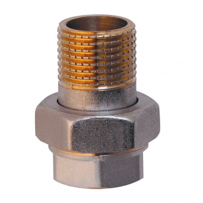 Количество в коробке: 240шт. Количество в упаковке: 30шт. Прямой разъемный сгон, смонтированный из двух частей с помощью накидной гайки (соединение типа «американка»). Резьба – внутренняя/наружная, цилиндрическая трубная. Внутренняя резьба совместима также с наружной конической трубной резьбой. Детали выполнены из латуни, никелированы. Уплотнительное кольцо – из синтетического каучука EPDM. Гайку следует накручивать с приложением момента не более 30 Н*м.