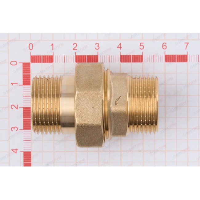 Латунная американка TIM 3/4", резьба наруж./наруж., арт. HKM033 Разъемное соединение "американка" TIM служит для быстрой расстыковки труб и любых запорно-регулирующих элементов. Суть американки заключается в том, что расстыковка магистрали происходит без вращения труб и арматуры - вращается только накидная гайка американки. Причем американка может разбираться неоднократно и использоваться в течении долгого времени эксплуатации трубопровода. Американка латунная TIM с наружними резьбами с резиновым уплотнительным кольцом. Область применения - системы водоснабжения и отопления при температуре до 95°С.