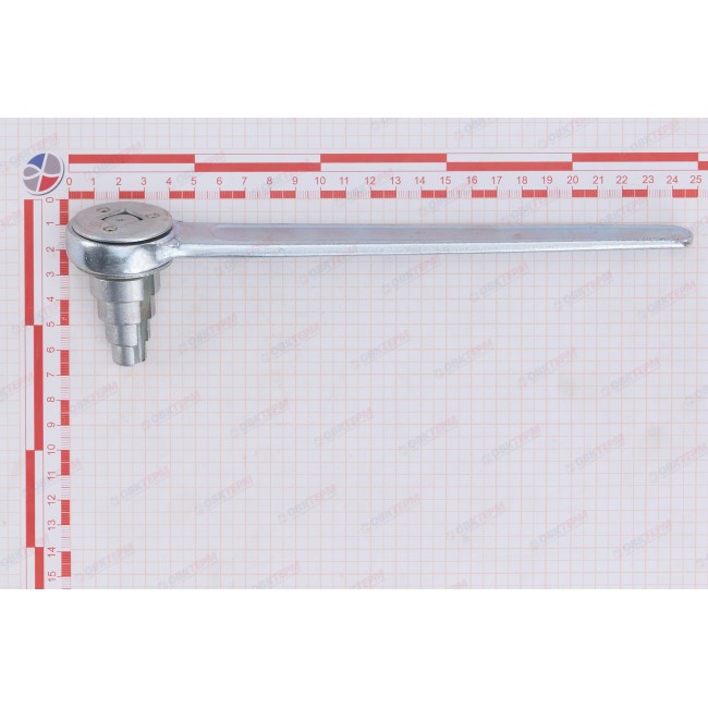 Сгонный ступенчатый ключ для монтажа резьбовых стальных, чугунных, латунных и бронзовых резьбовых фитингов типа «американка» с монтажными наплывами на внутренней поверхности. Выполнен из оцинкованной стали, оснащен длинной рукояткой и трещоткой. Диапазон диаметров – от 1/2 до 1 1/4”.