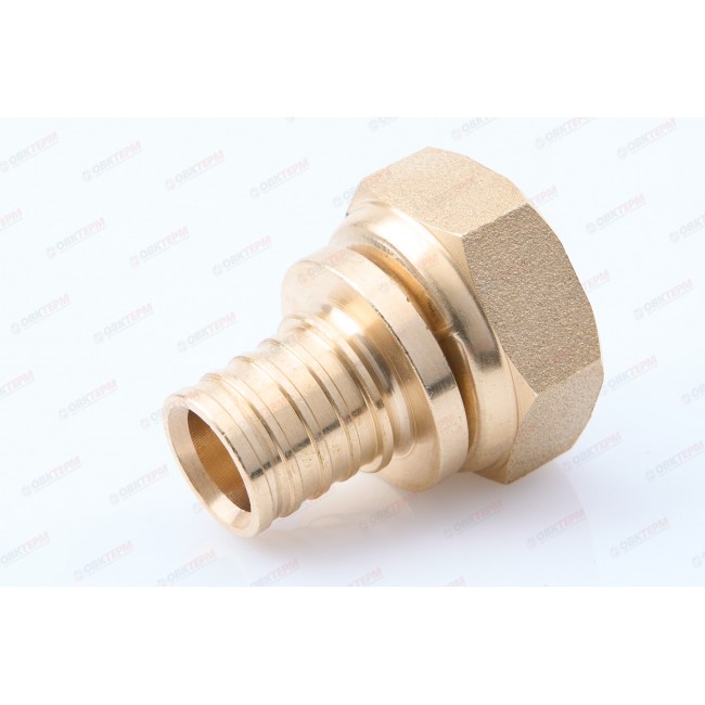 Количество в коробке: 340шт. Количество в упаковке: 40шт. Муфта аксиальная с накидной гайкой используется для стыковки полимерных труб из сшитого полиэтилена (PER) в системах водяных теплых полов. Фитинг изготовлен из латуни, резьба внутренняя. Обеспечивает герметичное соединение трубы со штуцером при помощи надвижной гильзы и резьбового соединения.