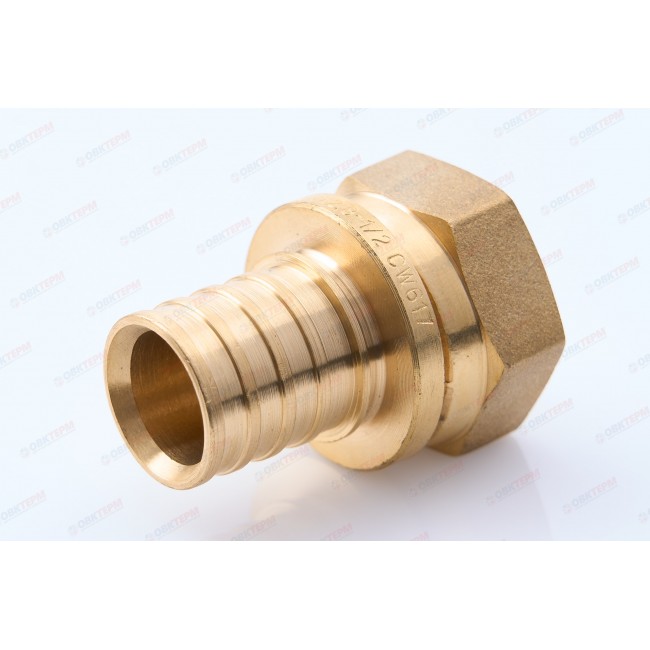 Количество в коробке: 280шт. Количество в упаковке: 35шт. Муфта аксиальная с накидной гайкой используется для стыковки полимерных труб из сшитого полиэтилена (PER) в системах водяных теплых полов. Фитинг изготовлен из латуни, резьба внутренняя. Обеспечивает герметичное соединение трубы со штуцером при помощи надвижной гильзы и резьбового соединения.