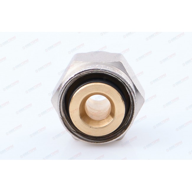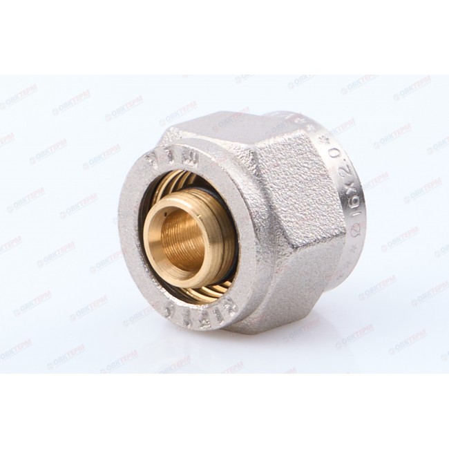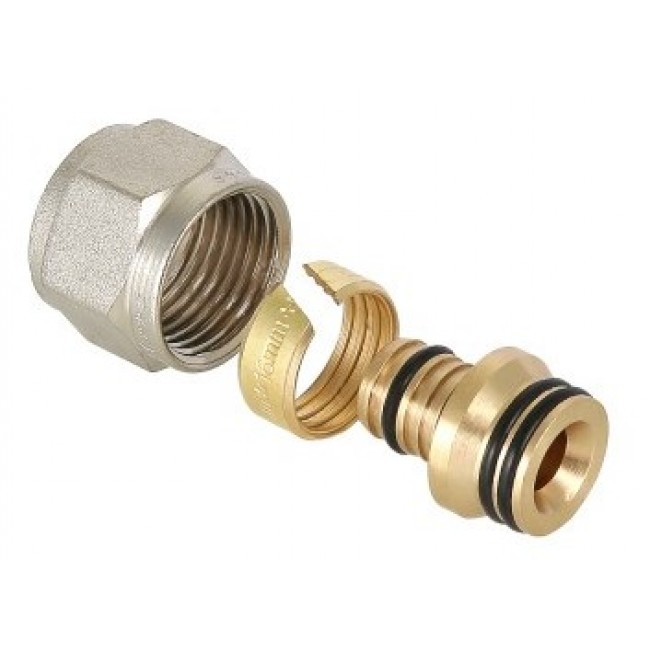 Латунный фитинг с накидной гайкой и обжимным кольцом для подключения металлополимерной (металлопластиковой) трубы к коллектору VALTEC с выходами диаметром 1/2", стандарт соединения – «конус». Размер - 16 мм x 1/2".