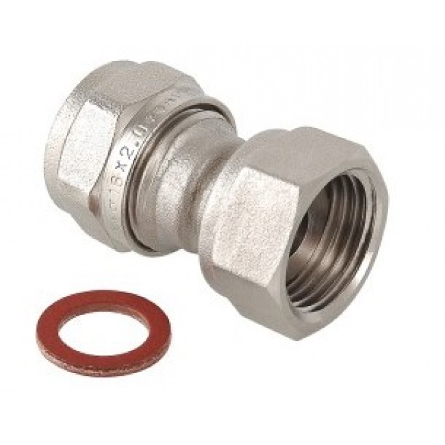Количество в упаковке: 5шт. Фитинг обжимной с накидной гайкой предназначен для создания разъемных соединений на металлополимерных трубопроводах. Применение данного фитинга позволяет при необходимости отсоединять металлопластиковую трубу от подключенного оборудования (например, водонагревателя) без разборки обжимного соединения.