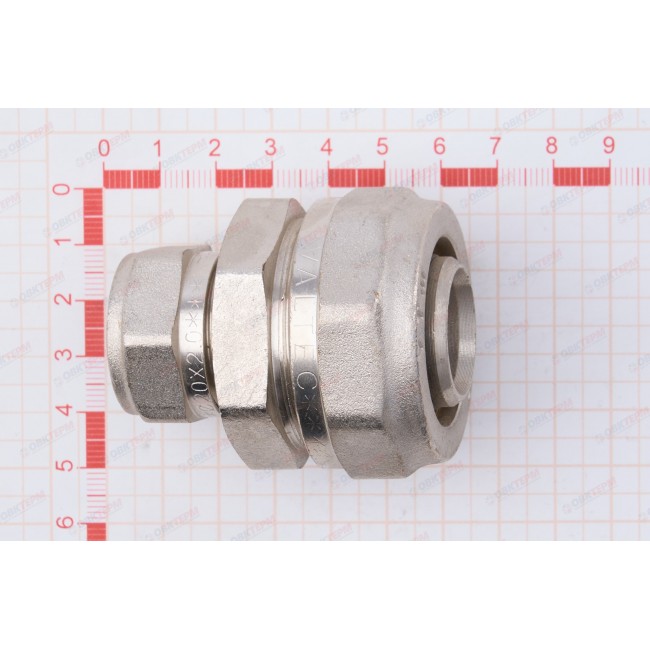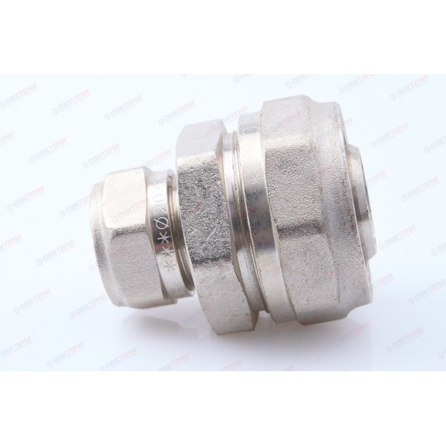 Прямой латунный никелированный фитинг для соединения металлополимерных труб. Имеются равнопроходные модели и модели с переходом на другой диаметр.