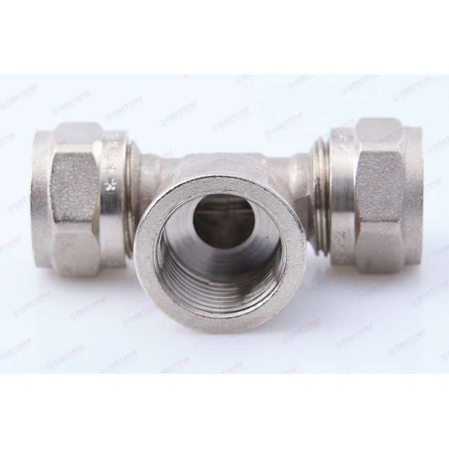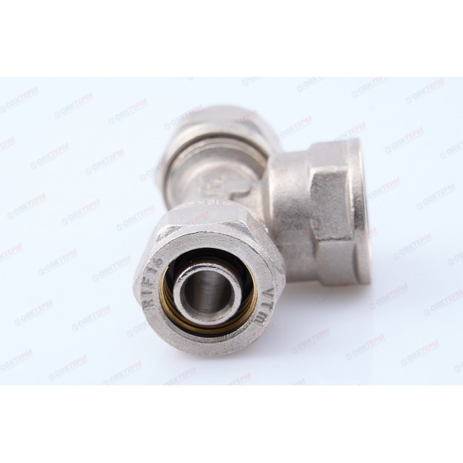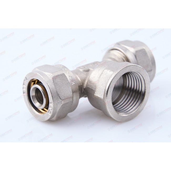 Фитинг обжимной – тройник с переходом на внутреннюю резьбу для металлополимерных (металлопластиковых) труб. Резьба фитинга – внутренняя трубная по ГОСТу 6357.