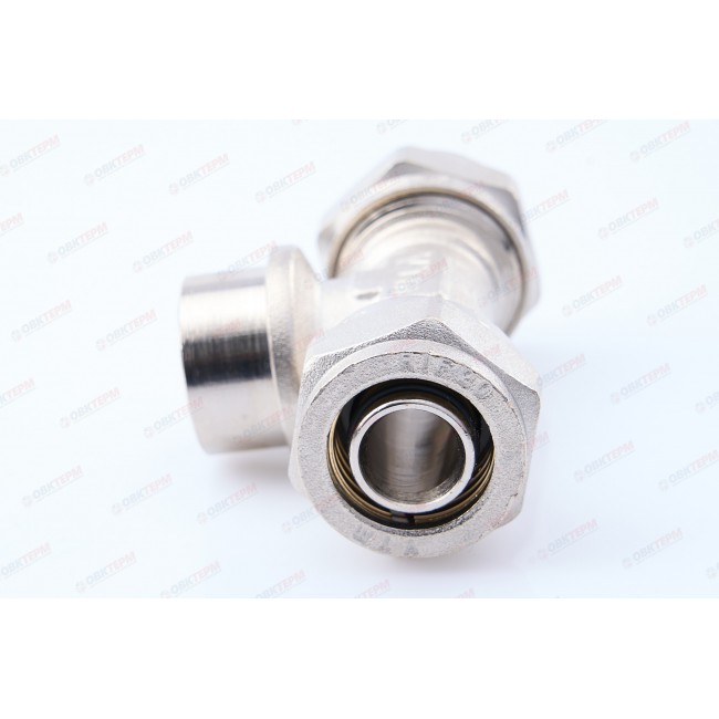Фитинг обжимной – тройник с переходом на внутреннюю резьбу для металлополимерных (металлопластиковых) труб. Резьба фитинга – внутренняя трубная по ГОСТу 6357.