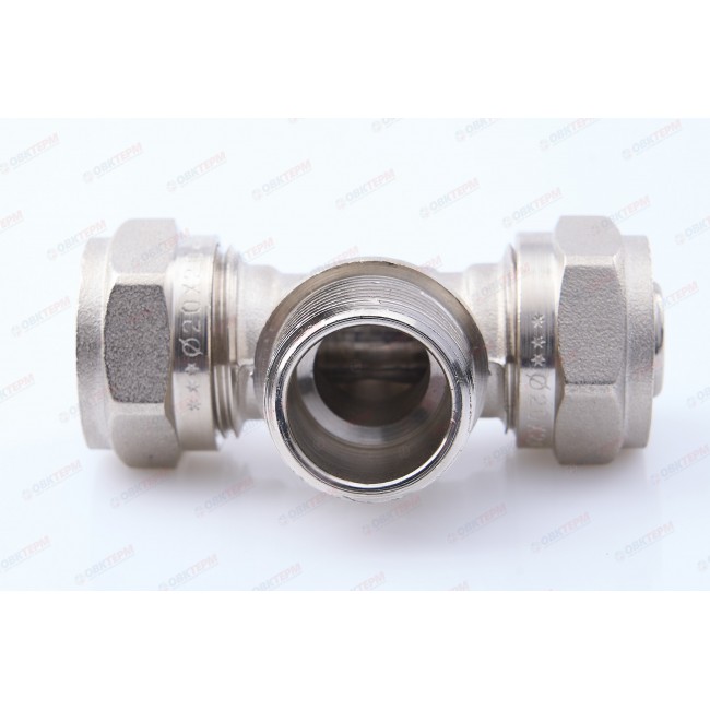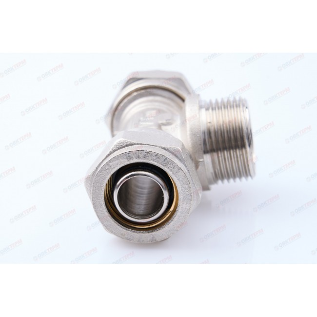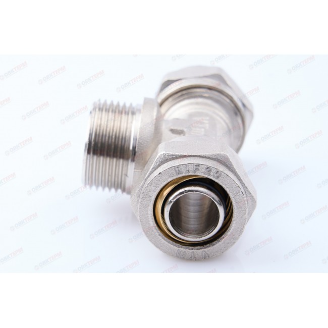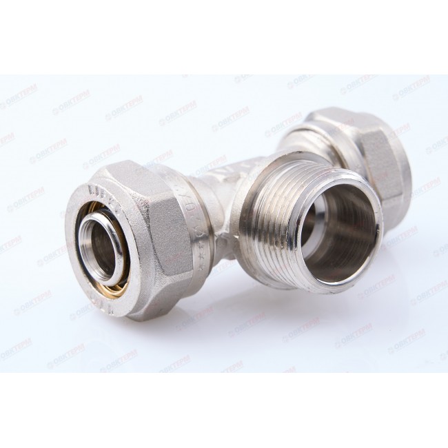 Фитинг обжимной – тройник с переходом на наружную резьбу для присоединения металлополимерных (металлопластиковых) трубопроводов. Резьба фитинга – наружная трубная по ГОСТу 6357.