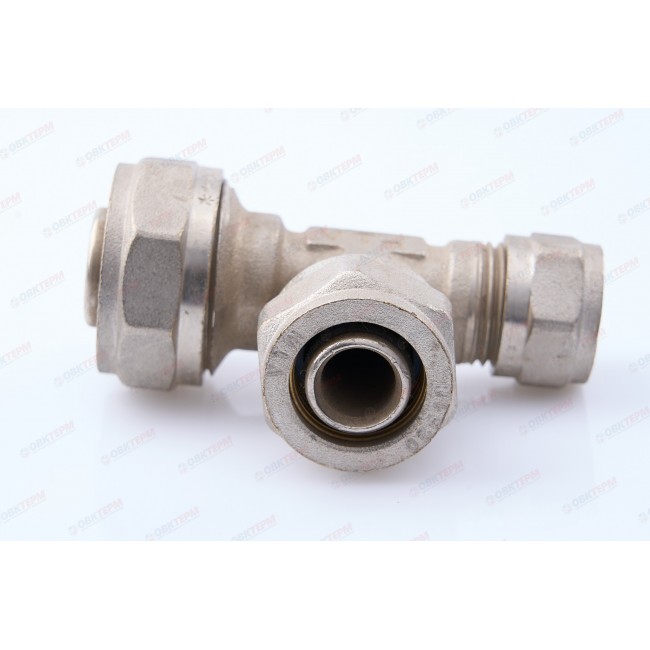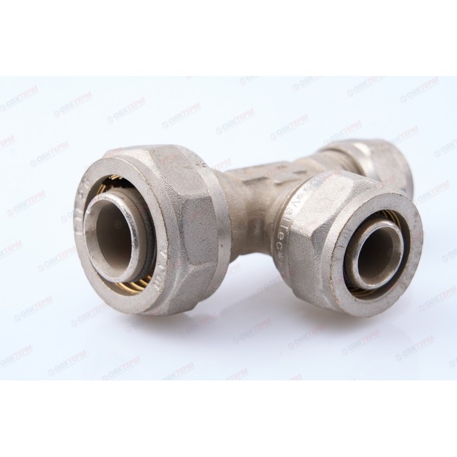 Фитинг обжимной – тройник латунный никелированный для соединения металлопластиковых (металлополимерных) труб. Имеются равнопроходные и переходные модели.