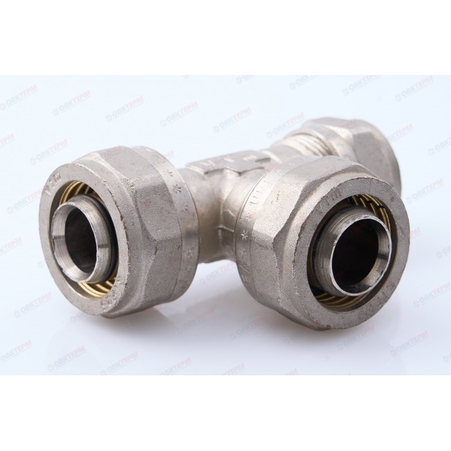 Фитинг обжимной – тройник латунный никелированный для соединения металлопластиковых (металлополимерных) труб. Имеются равнопроходные и переходные модели.