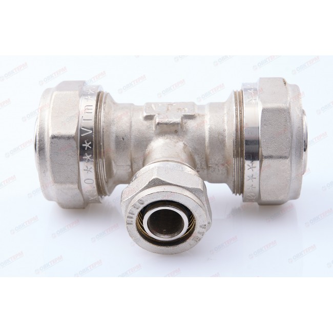 Фитинг обжимной – тройник латунный никелированный для соединения металлопластиковых (металлополимерных) труб. Имеются равнопроходные и переходные модели.