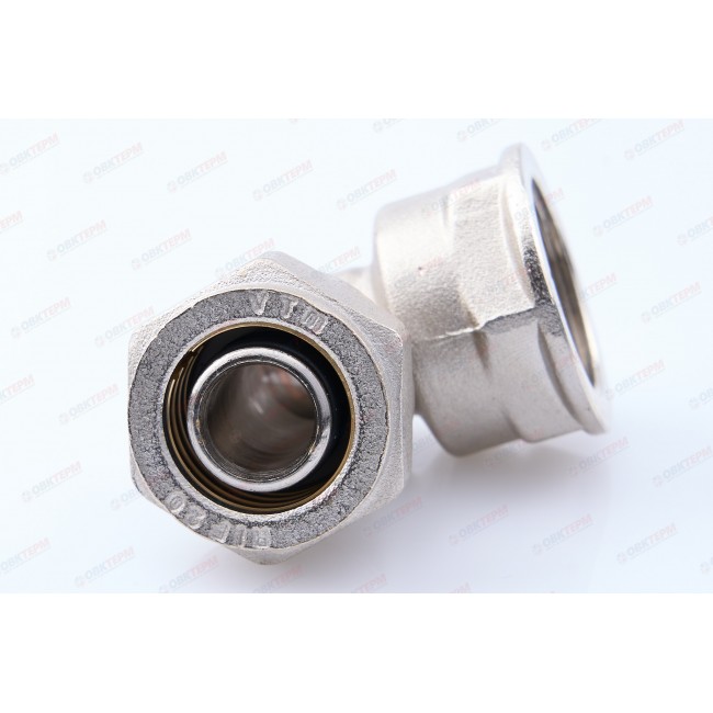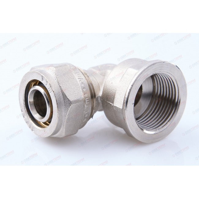 Количество в упаковке: 10шт. Фитинг обжимной – угольник с переходом на внутреннюю резьбу для металлополимерных (металлопластиковых) трубопроводов. Резьба фитинга – внутренняя трубная по ГОСТу 6357.