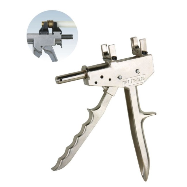 Ручной универсальный аксиальный пресс инструмент для пресс фитингов (12,16,20), TIM, FT-1225. Ручной универсальный аксиальный пресс инструмент TIM для пресс фитингов (12,16,20) , FT-1225. Компактный, удобный ручной инструмент для изготовления соединений с обжимающей и запрессовывающей муфтой. Пресс-головки выдерживают очень большую нагрузку, изготовлены из кованой и особо закалённой спецстали. Гарантированно безупречно комфортная, надёжная прессовка. Калибратор в комплекте.