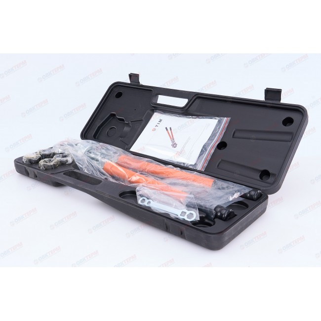 Предназначены для ручного обжима пресс-фитингов при монтаже трубопроводных систем из полимерных, металлополимерных, медных труб, а также тонкостенных труб из нержавеющей стали. Усилие обжатия зависит от длины телескопических рукояток. Механизм пресс-головки может поворачиваться относительно рукояток на 360º. Комплект вкладышей имеет профиль TH. Расчетный срок службы (при условии непревышения среднего полного ресурса) лет 5. Клещи, вкладыши – сталь. Комплектация – пресс-клещи, вкладыш d=16 мм, вкладыш d=20 мм, вкладыш d=26 мм, вкладыш d=32 мм, пластиковый кейс.