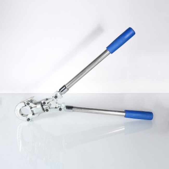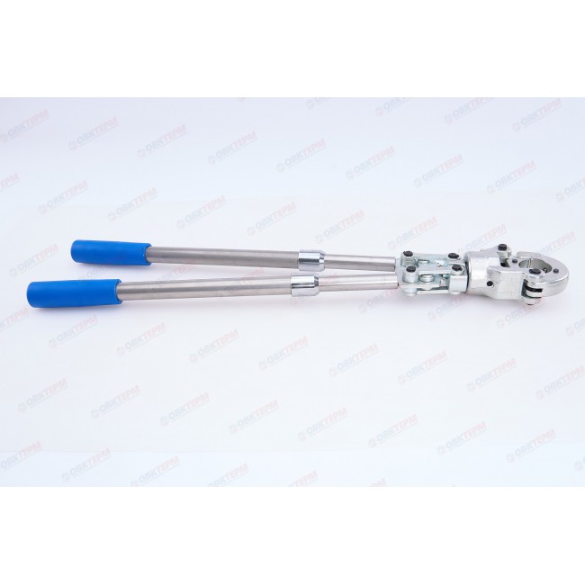 Радиальные клещи для ручного обжатия пресс-фитингов трубопроводных систем из полимерных, металлополимерных, медных труб, а также тонкостенных труб из нержавеющей стали. Усилие обжатия зависит от длины телескопических рукояток и регулируется также механизмом пресс-головки, которая, кроме того, может поворачиваться относительно рукояток на 360°. Масса пресс-инструмента без насадок – 3,1 кг. Клещи комплектуются насадками с профилем ТН, предназначенными для монтажа пресс-фитингов VALTEC диаметром 16, 20, 26, 32 мм.