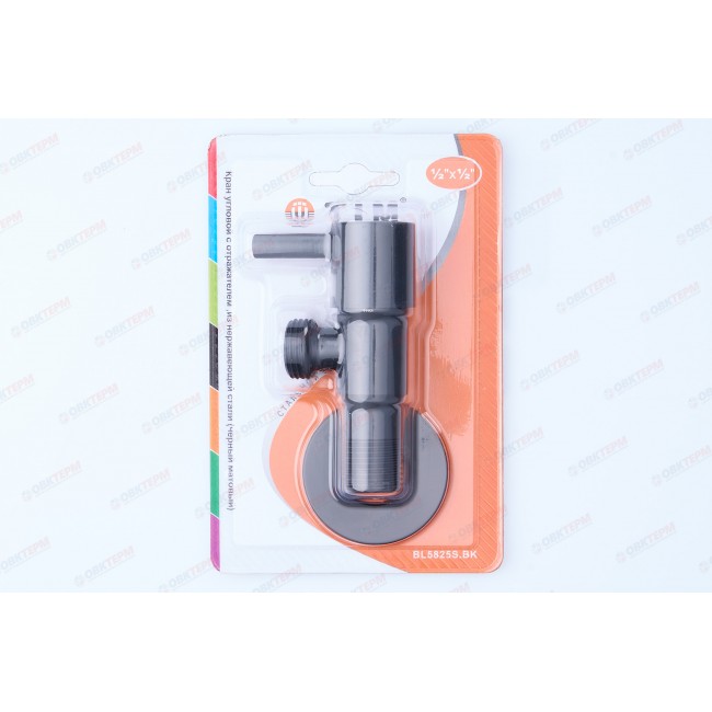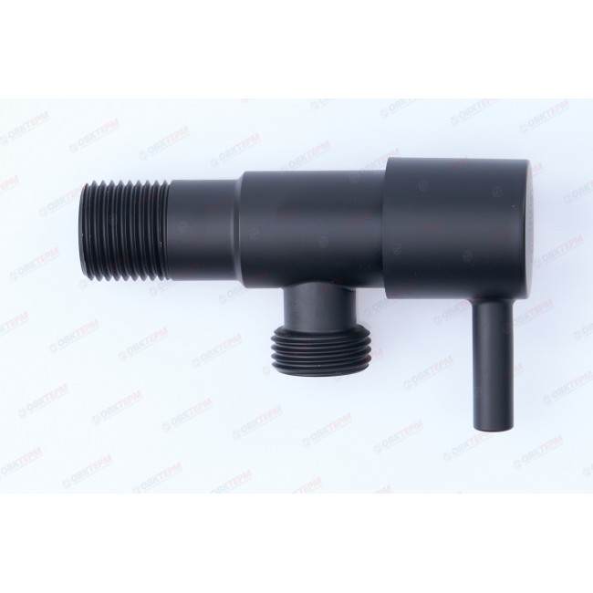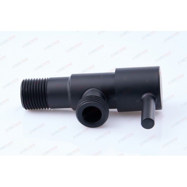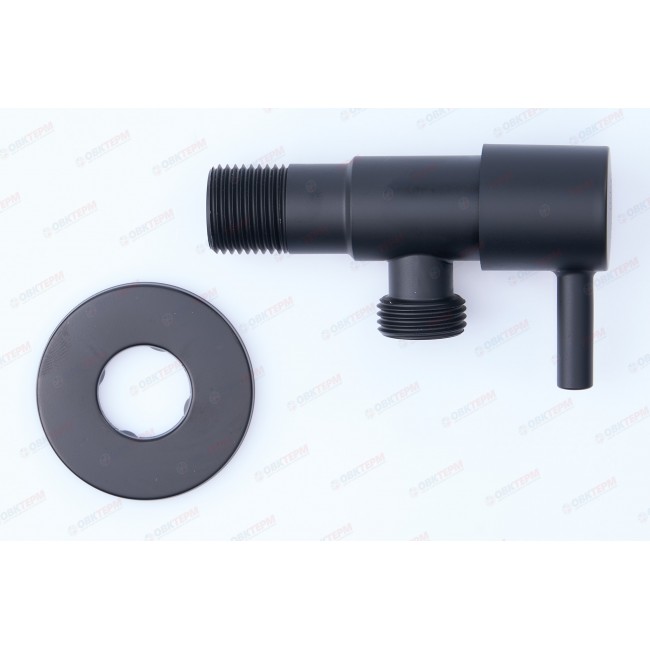 Кран для подключения сантехнических приборов 1/2" - 1/2", черный, нержавеющая сталь круглый TIM