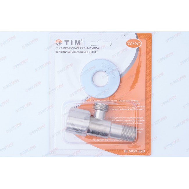 Кран для подключения сантехнических приборов 1/2" - 1/2", нержавеющая сталь BL5853.02S TIM