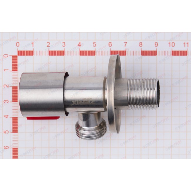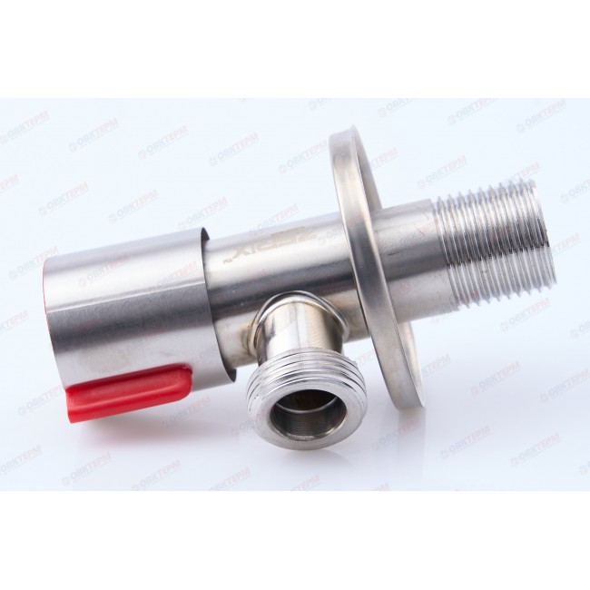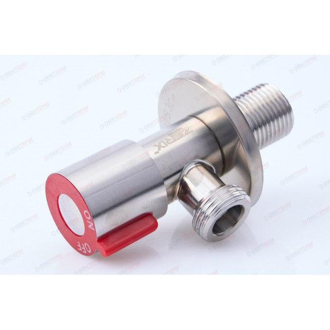 Количество в коробке: 100шт. Кран для подключения сантехнических приборов 1/2x1/2 MIXXUS VAL-02 красная (нерж. сталь) (SS0049). Кран для подключения сантехнических приборов, металлокерамика угловой 1/2"х1/2", красная ручка, с отражателем, из нержавеющей стали марка 304 цвет красный