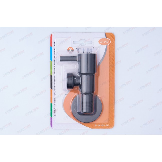 Кран для подключения сантехнических приборов 1/2" - 3/4", черный, круглый Tim
