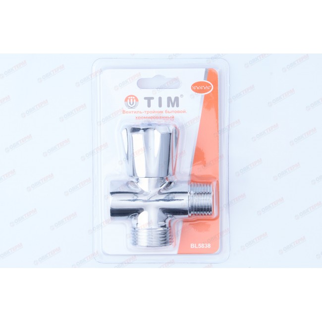 Кран проходной для стиральной машины 1/2" - 3/4" - 1/2, хром вентильный BL5838 TIM