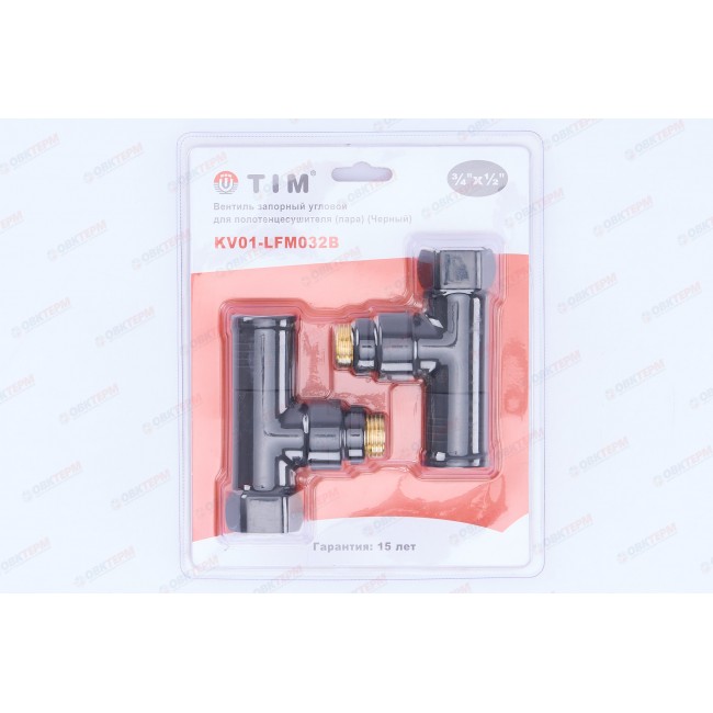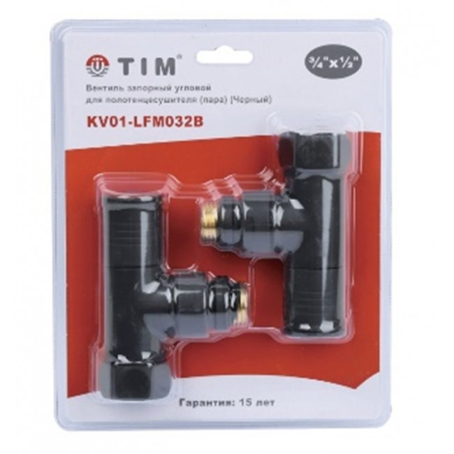 Кран вентильный с американкой 3/4"В - 1/2"Н хром, угловой, круглый,черный Tim