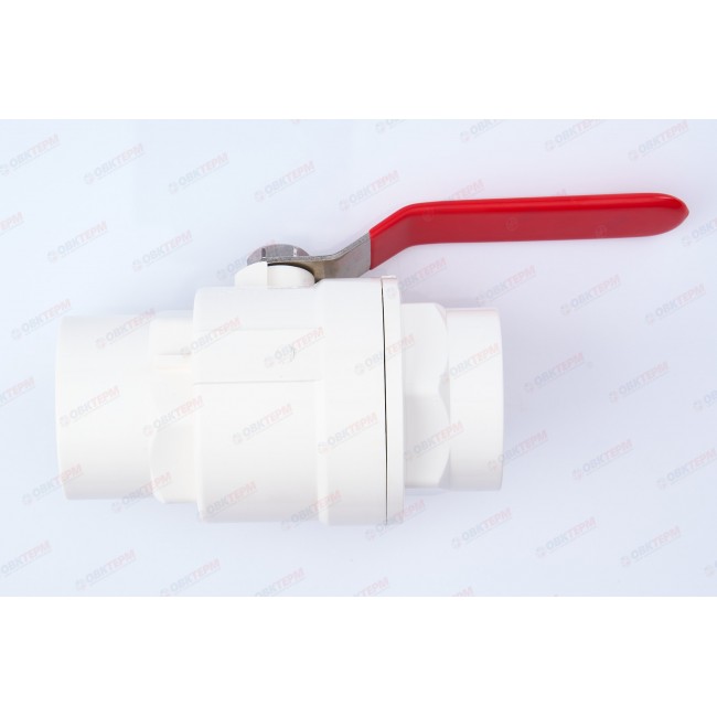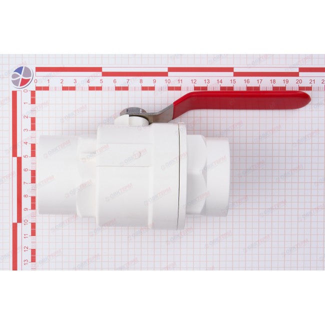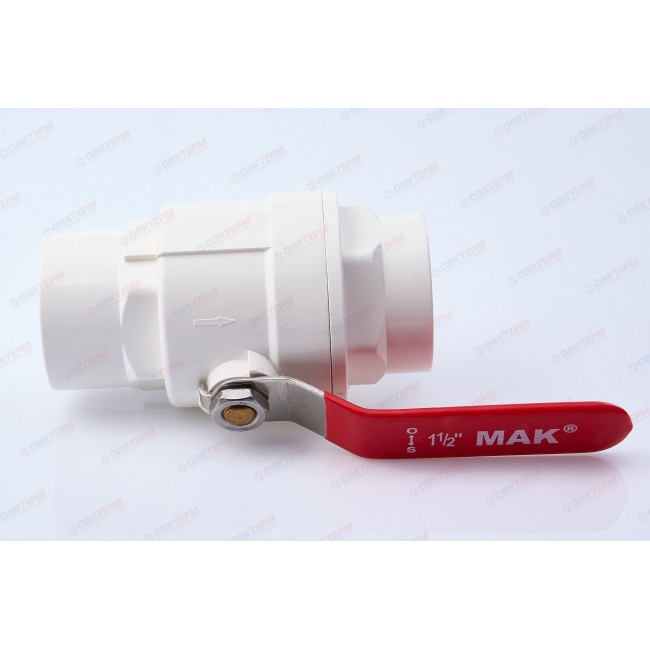 Кран шаровый пластиковый 1 1/2" ВВ ручка металл (белый) MAK