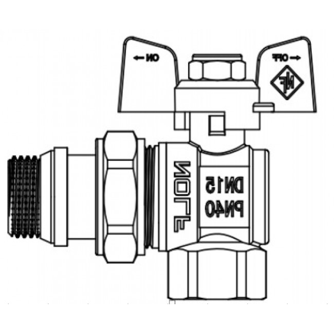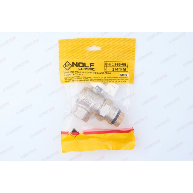 Кран шаровый с американкой "антипротечка" УГЛОВОЙ NOLF Classic 3/4" бабочка усиленный (40 шт)