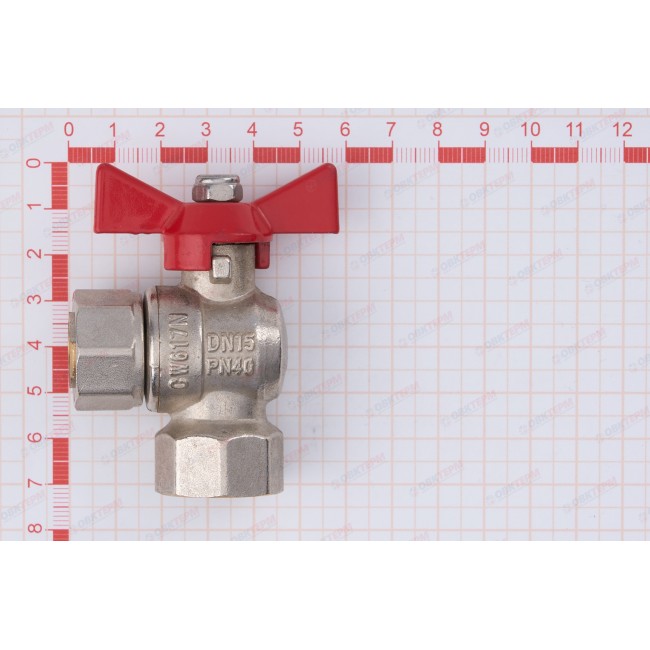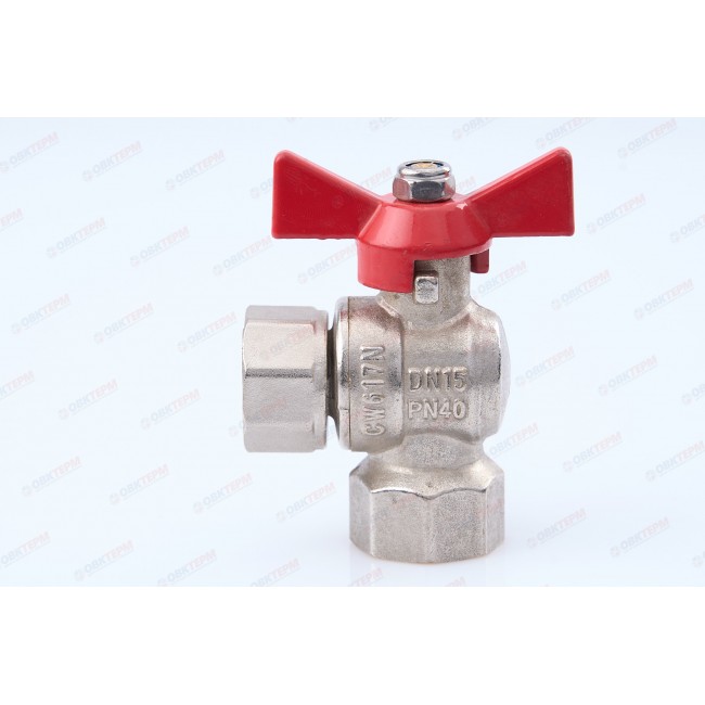 Кран шаровой 1/2" угловой с накидной гайкой, внутренняя-внутренняя резьба VT.266.N.0404 Valtec