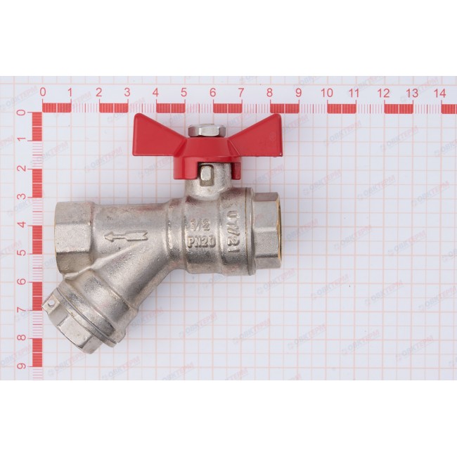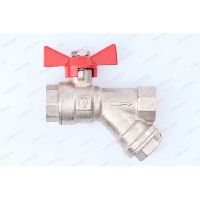 Кран шаровой 1/2" внутренняя-внутренняя резьба с фильтром, бабочка VT.293.N.04 Valtec