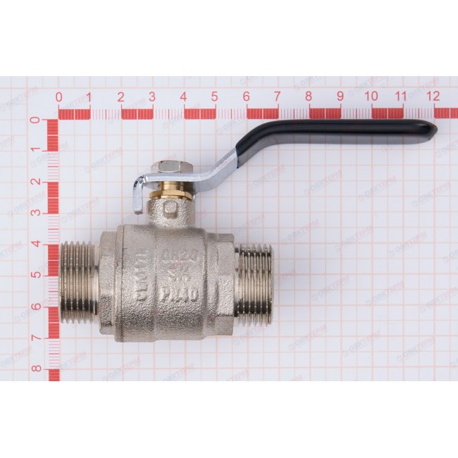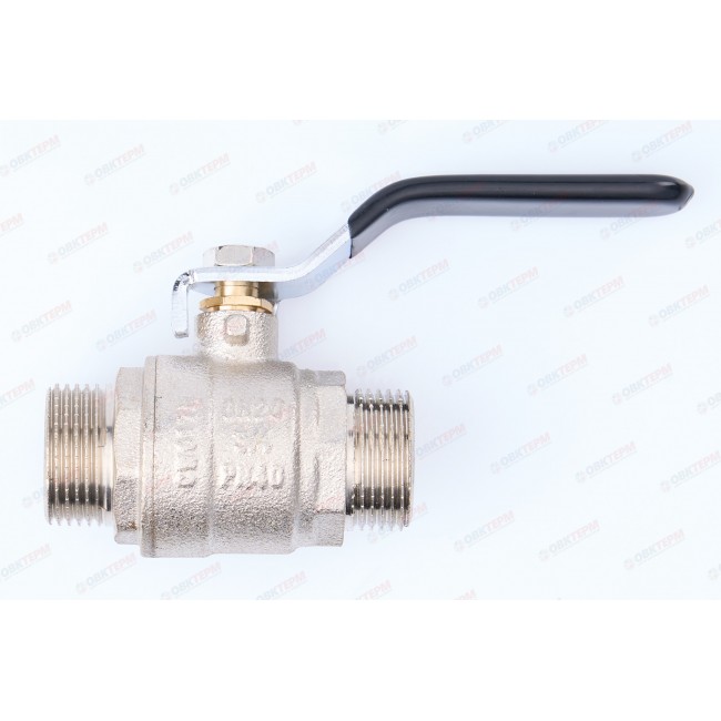 Количество в коробке: 40шт. Количество в упаковке: 10шт. Кран шаровой усильный латунный полный проходной с никелированным покрытием, ручка "длиный рычаг", присоединение: 1/2" наружная - наружная